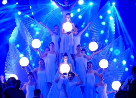 Anlässlich ihres 25jährigen Jubiläums lädt die Thüringer Tanz-Akademie mit ihrem Theater im Gewölbe zum Mondschein-Ball in den Festsaal der Weimarhalle. Prof. Harald Lesch und Hans Raths eröffnen den Abend mit einer universellen Betrachtung von außerirdischen Besuchern auf tanzenden Planeten. Ob "Moon River", "Fly me to the Moon" oder "Hijo de la luna" – das Moonlight Orchestra führt in mitreißenden Ballrunden thematisch durch die Nacht, Gesang und Moderation Eva-Maria Ortmann und Patrick Rohbeck. Umrahmt wird dieses himmlische Vergnügen neben Schautänzen und Shows der Akademie von akrobatischer Luft- und Tanzartistik des Circus Gaudimus.